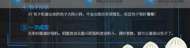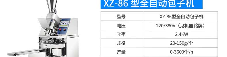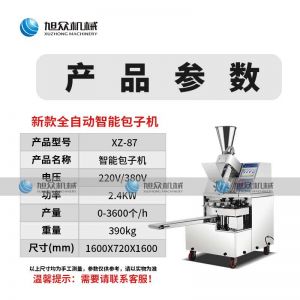 名稱XZ-87全自動(dòng)包子機(jī) 電源220/380v 功率2.4kw 產(chǎn)量 尺寸1600*720*1600mm 重量390kg 規(guī)格20-150克/只 其他