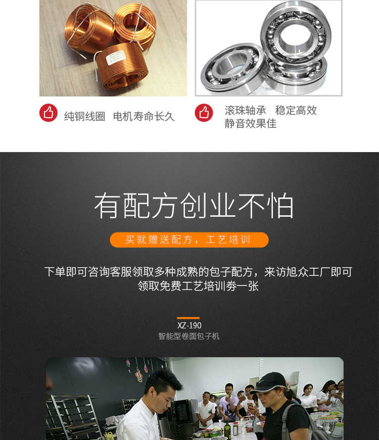XZ-190智能型卷面式包子機(jī),科技和工藝出乎想象不傷面筋,不斷面筋,薄厚調(diào)節(jié)自如可直接調(diào)節(jié)面皮的薄厚,所出產(chǎn)品外形大小統(tǒng)一,遠(yuǎn)比手工制作美觀!
