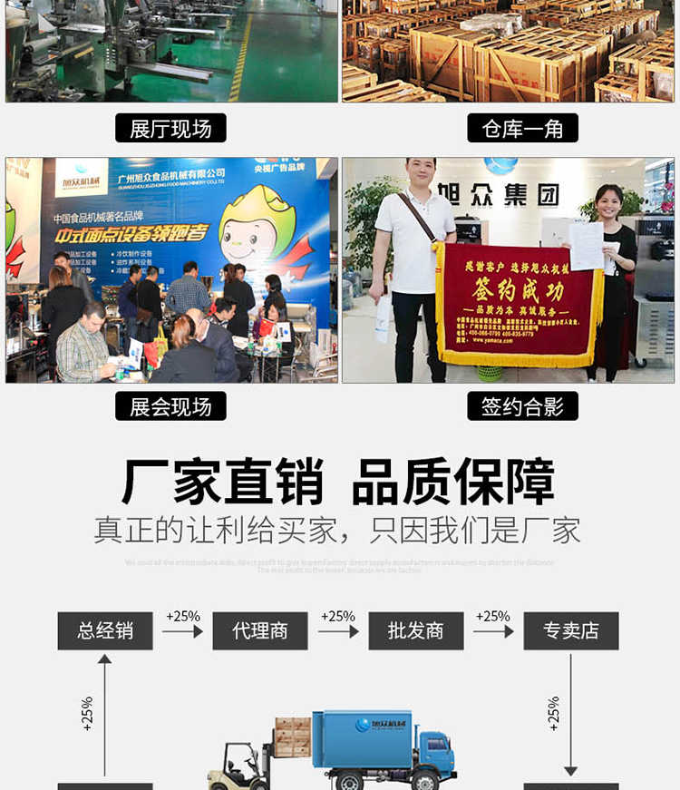 廣州旭眾食品機(jī)械有限公司是一家集科研開發(fā),生產(chǎn)設(shè)計,營銷服務(wù)為一體的現(xiàn)代化生產(chǎn)企業(yè)?,F(xiàn)代化生產(chǎn)車間,精湛制造技術(shù),所產(chǎn)機(jī)械歷經(jīng)市場重重考驗,不斷贏得海內(nèi)外客戶的贊譽(yù)。