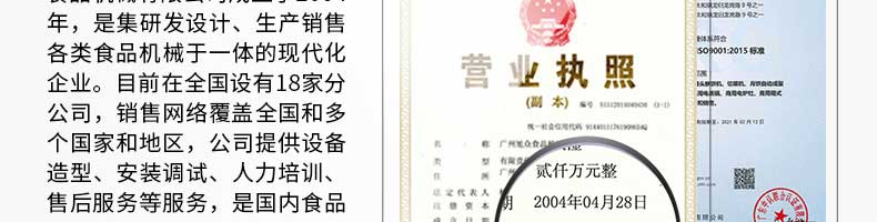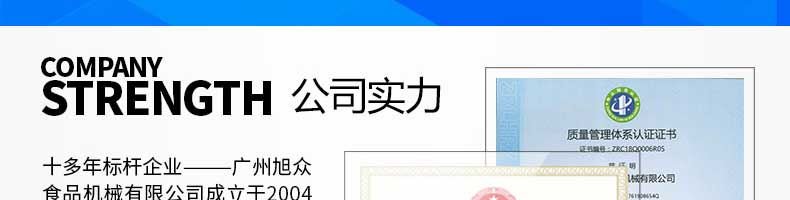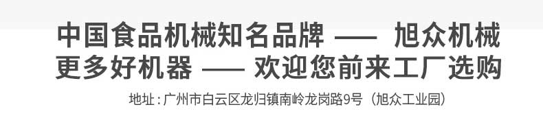 廣州旭眾食品機(jī)械有限公司是一家集科研開(kāi)發(fā),生產(chǎn)設(shè)計(jì),營(yíng)銷服務(wù)為一體的現(xiàn)代化生產(chǎn)企業(yè)?,F(xiàn)代化生產(chǎn)車(chē)間,精湛制造技術(shù),所產(chǎn)機(jī)械歷經(jīng)市場(chǎng)重重考驗(yàn),不斷贏得海內(nèi)外客戶的贊譽(yù)。