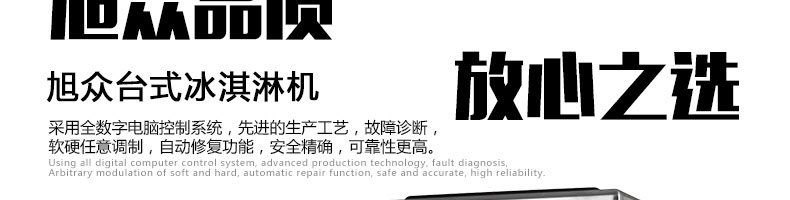 BQL-216T臺式冰淇淋機,●選用國際名牌成熟制冷配套件和高效壓縮機,融合旭眾精湛工藝輔以嚴格的質量控制流程,使產品整體性能及品質得以全面提升?!癫捎萌珨?shù)字電腦控制系統(tǒng),選用名牌優(yōu)質電器元件,先進的生產工藝,故障診斷,軟硬任意調制,自動修復功能,安全精確,可靠性更高?!駥I(yè)成熟制冷系統(tǒng)設計,選用世界名牌大功率專用壓縮機,大大縮短冰淇淋成型時間,相同時間內冰淇淋產量大幅度增加,使您生意火爆時依然得心應手,為您創(chuàng)造財富?!癜踩椒€(wěn)的機械攪拌系統(tǒng),噪音更低、振動更小,使整機運行性能達到國際先進水平?!翊_保進料溫度在0°C~35°C;環(huán)境溫度5°C~40°C勻可正常使用。