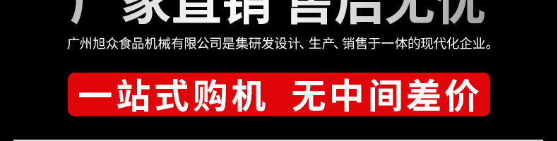 廣州旭眾食品機械有限公司是一家集科研開發(fā),生產(chǎn)設(shè)計,營銷服務(wù)為一體的現(xiàn)代化生產(chǎn)企業(yè)。現(xiàn)代化生產(chǎn)車間,精湛制造技術(shù),所產(chǎn)機械歷經(jīng)市場重重考驗,不斷贏得海內(nèi)外客戶的贊譽。