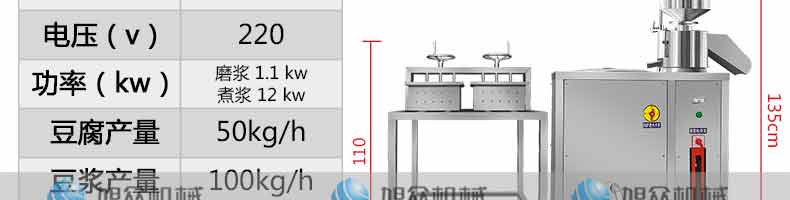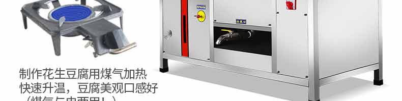 名稱xz-61手動帶攪拌花生豆腐機 電源220V 功率磨漿1.1KW,煮漿12KW 產(chǎn)量豆腐產(chǎn)量50KG/H,豆?jié){產(chǎn)量100KG/H 尺寸尺寸140*60*120mm 重量重量100KG 規(guī)格 其他