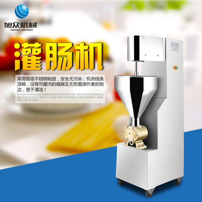 SZ-200灌腸機(jī),適合灌制各種香腸、紅腸、臘腸及糊狀制品。本機(jī)使用敞開式不銹鋼料斗,適用于連續(xù)添加物料;與灌裝手接觸部件全部采用優(yōu)質(zhì)不銹鋼制作以防生銹;該機(jī)自動(dòng)貨程度高,技術(shù)先進(jìn)、性能穩(wěn)定、操作簡便、工作效率高,具有不破壞物料成份,保質(zhì)、保鮮等特點(diǎn)。
