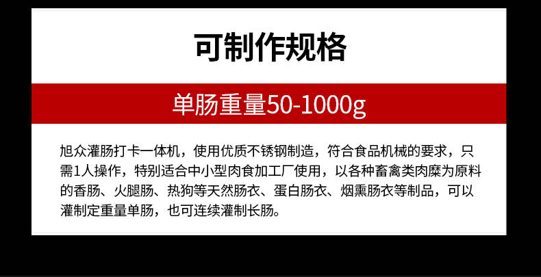 作者:旭眾機(jī)械發(fā)布時(shí)間:2022-03-04 09:51查看數(shù):您當(dāng)前的位置:首頁(yè)>>產(chǎn)品展示>>肉制品加工系列>>灌腸機(jī)系列