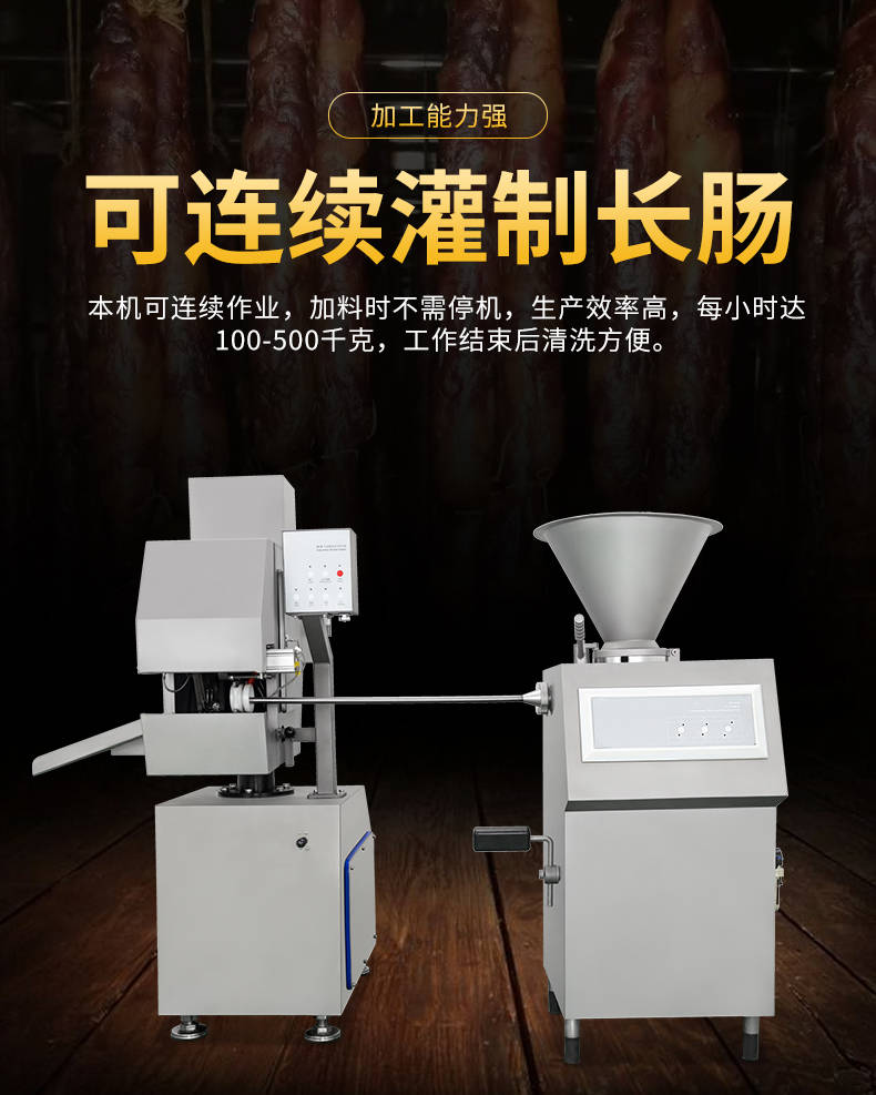 XZ-I型自動(dòng)定量灌腸機(jī),使用優(yōu)質(zhì)不銹鋼制造,符合食品機(jī)械的要求,只需1人操作,特別適合中小型肉食加工廠使用,以各種畜禽類肉糜為原料的香腸、火腿腸、熱狗等天然腸衣、蛋白腸衣、煙熏腸衣等制品,可以灌制定重量單腸,也可連續(xù)灌制長(zhǎng)腸。