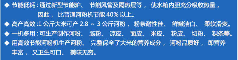 名稱(chēng)SZ-HF-500高效節(jié)能河粉機(jī) 電源220V 功率1.1kw 產(chǎn)量240/300/400/500kg/h 尺寸主機(jī)尺寸7500*1000*1050mm 外形尺寸7600*1200*1500mm 重量650kg 規(guī)格粉條寬度mm:4/6/8/10 其他