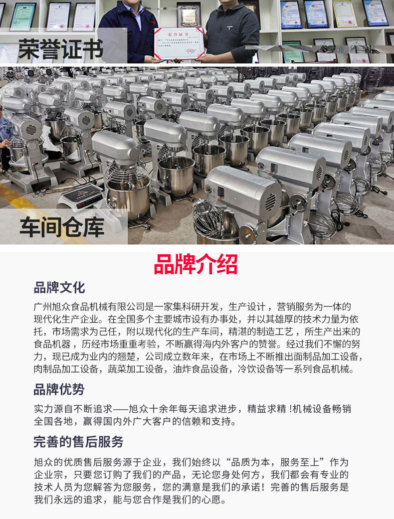 廣州旭眾食品機械有限公司是一家集科研開發(fā),生產(chǎn)設(shè)計,營銷服務為一體的現(xiàn)代化生產(chǎn)企業(yè)。現(xiàn)代化生產(chǎn)車間,精湛制造技術(shù),所產(chǎn)機械歷經(jīng)市場重重考驗,不斷贏得海內(nèi)外客戶的贊譽。
