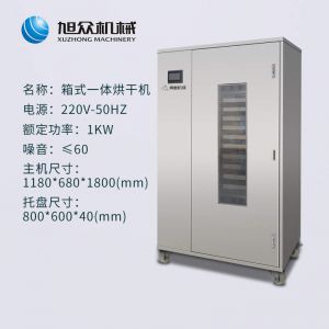 名稱箱式一體果蔬烘干機(jī) 電源220V-50HZ 功率1KW 產(chǎn)量聯(lián)系銷售員 尺寸1180*680*1800(mm托盤尺寸800*600*40(mm) 重量153KG 規(guī)格聯(lián)系銷售員 其他噪音:≤60主機(jī)