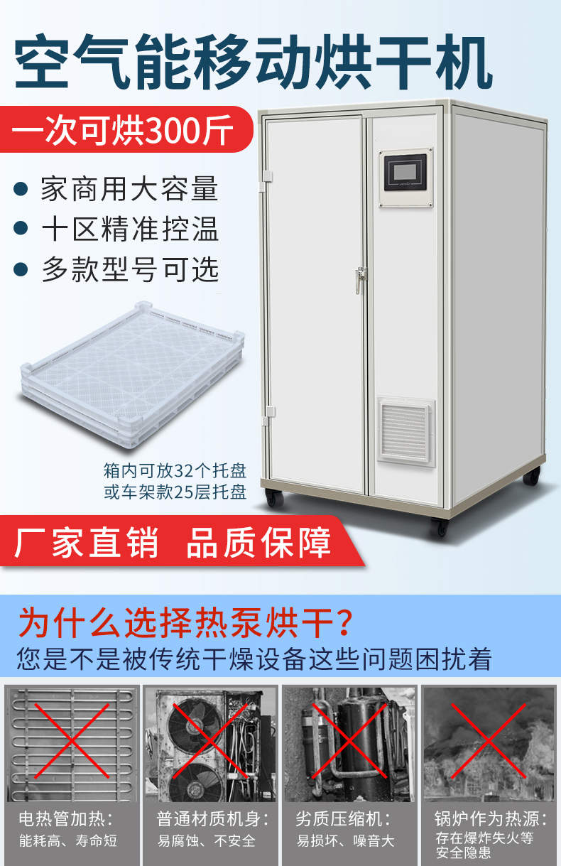 烘干抽濕一體機(帶烘房),空氣能移動烘干機,一次可烘300斤、家商用大容量、十區(qū)精準控溫、多款型號可選。智能烘干時代出類拔萃的新體驗
