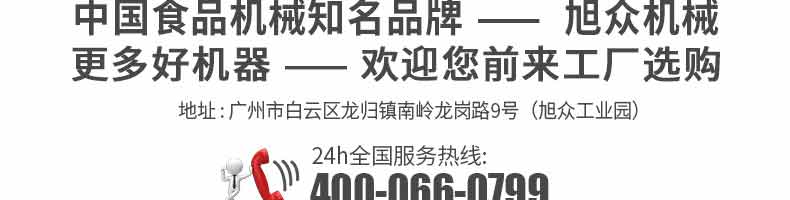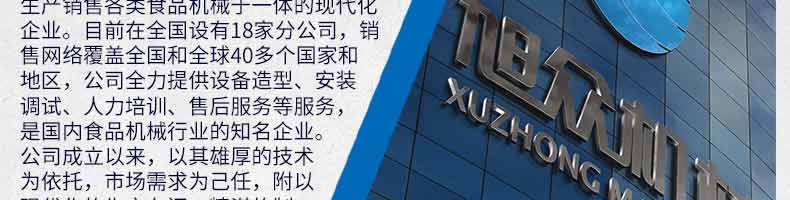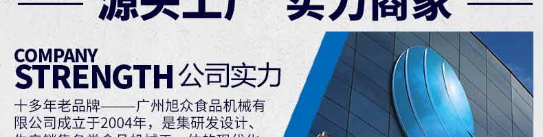 廣州旭眾食品機(jī)械有限公司是一家集科研開發(fā),生產(chǎn)設(shè)計(jì),營銷服務(wù)為一體的現(xiàn)代化生產(chǎn)企業(yè)?,F(xiàn)代化生產(chǎn)車間,精湛制造技術(shù),所產(chǎn)機(jī)械歷經(jīng)市場(chǎng)重重考驗(yàn),不斷贏得海內(nèi)外客戶的贊譽(yù)。