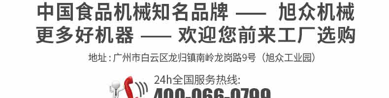 廣州旭眾食品機(jī)械有限公司是一家集科研開發(fā),生產(chǎn)設(shè)計,營銷服務(wù)為一體的現(xiàn)代化生產(chǎn)企業(yè)?,F(xiàn)代化生產(chǎn)車間,精湛制造技術(shù),所產(chǎn)機(jī)械歷經(jīng)市場重重考驗,不斷贏得海內(nèi)外客戶的贊譽(yù)。