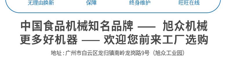 廣州旭眾食品機(jī)械有限公司是一家集科研開(kāi)發(fā),生產(chǎn)設(shè)計(jì),營(yíng)銷服務(wù)為一體的現(xiàn)代化生產(chǎn)企業(yè)。現(xiàn)代化生產(chǎn)車間,精湛制造技術(shù),所產(chǎn)機(jī)械歷經(jīng)市場(chǎng)重重考驗(yàn),不斷贏得海內(nèi)外客戶的贊譽(yù)。