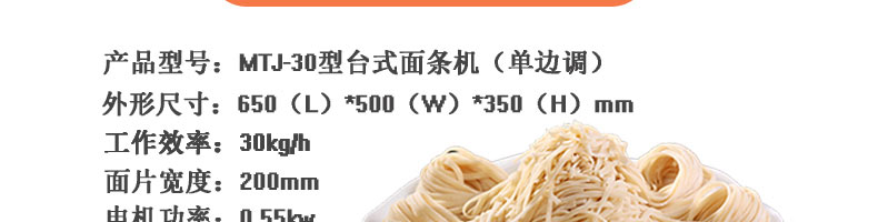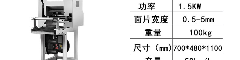 名稱30型全自動壓面面條機 電源220v 功率0.55kw 產量30kg/h 尺寸650*500*350mm 重量45kg 規(guī)格 其他