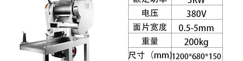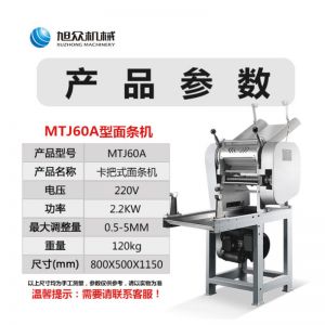 名稱60型全自動壓面面條機 電源220v 功率2.2kw 產(chǎn)量60kg/h 尺寸800*500*1150mm 重量120kg 規(guī)格 其他