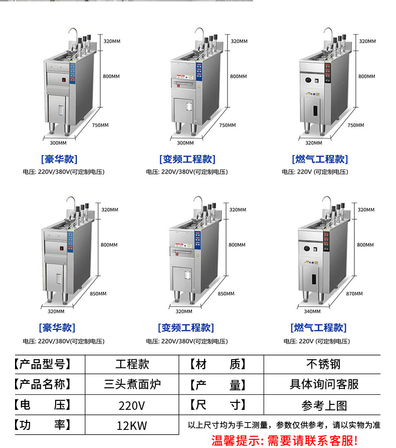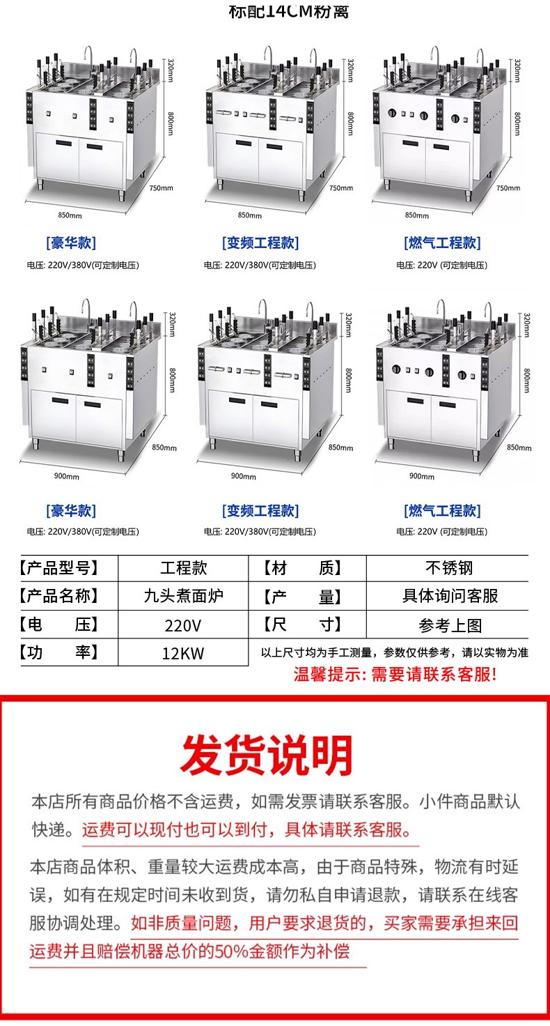 名稱三合一煮面爐 電源380V 功率12+6+1KW 產(chǎn)量請咨詢銷售員 尺寸1500*800*1000mm 重量125kg 規(guī)格請咨詢銷售員 其他不銹鋼材質(zhì)