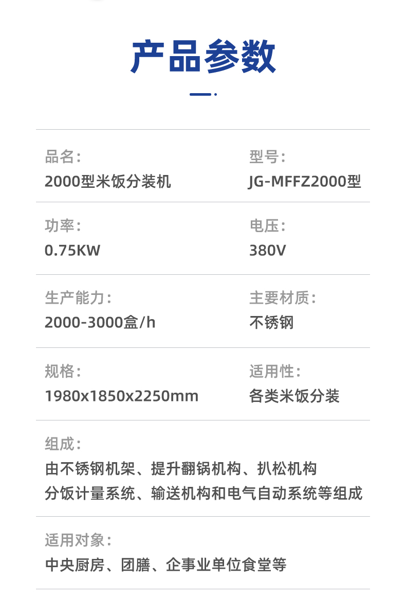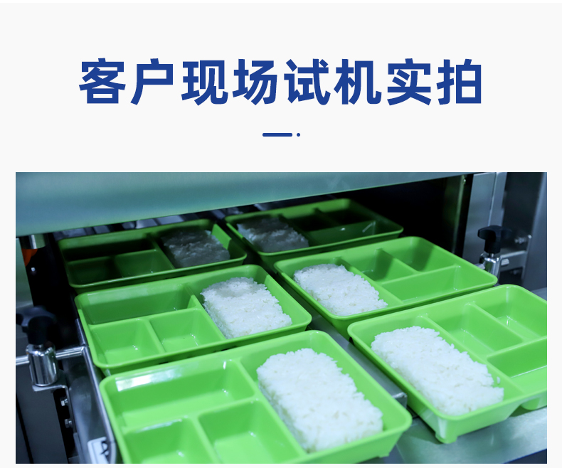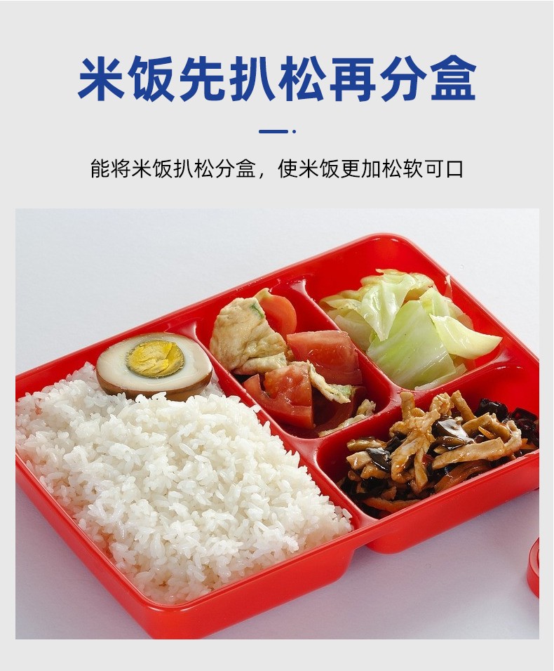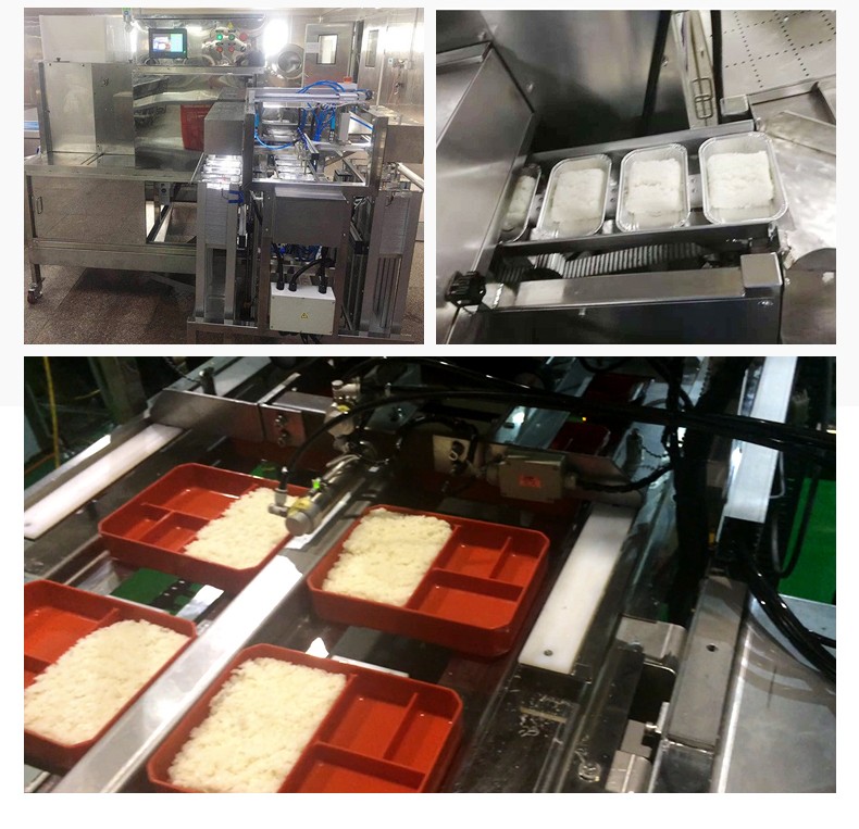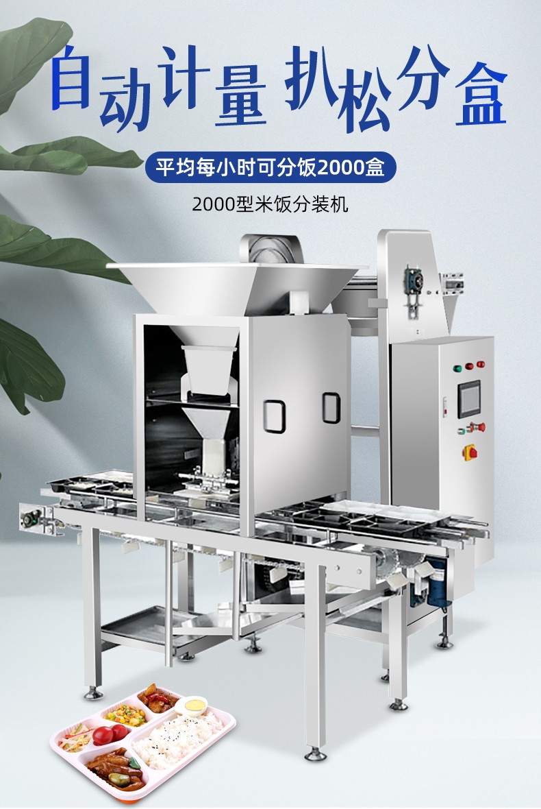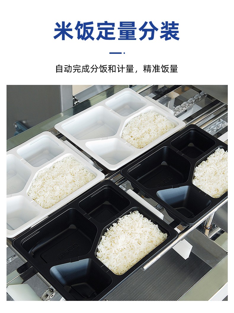 米飯分裝機,適用多場合大型米飯加工中心、快餐公司、大型配餐中心企事業(yè)單位、學(xué)校食堂、釀造企業(yè)。米飯定量分裝,自動完成分飯和計量,精準飯量。米飯先扒松再分盒,能將米飯扒松分盒,使米飯更加松軟可口。