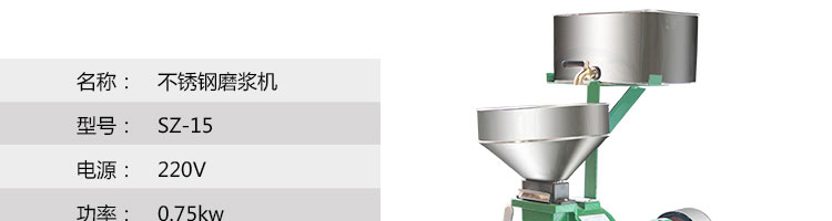 名稱SZ-15不銹鋼自動(dòng)磨漿機(jī) 電源220v 功率0.75kw 產(chǎn)量1400(轉(zhuǎn)/分) 尺寸465*250*745mm 重量45kg 規(guī)格 其他