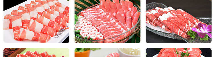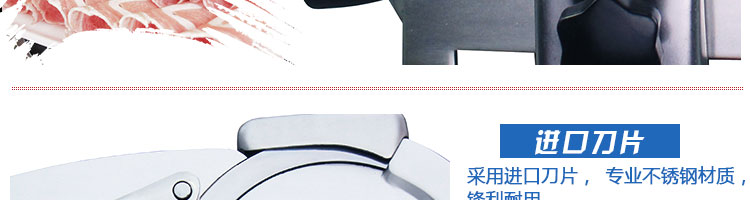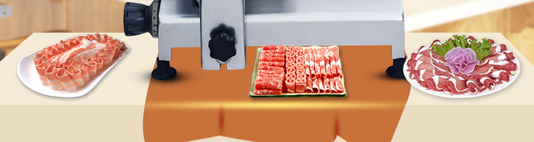 臺式半自動切片機,適合切無骨肉類和其他類似榨菜帶有彈性的食物,把原材料肉切成肉片,并可自動成卷狀??汕信H馄?、羊肉片等