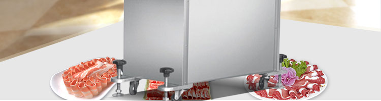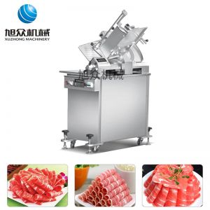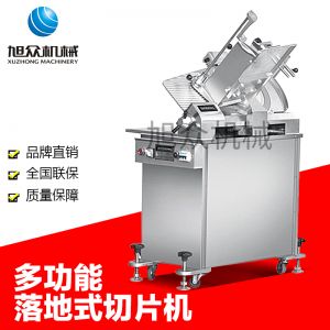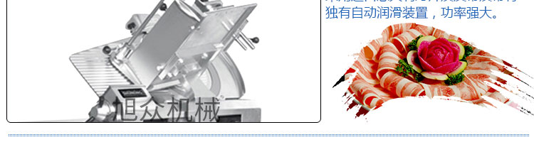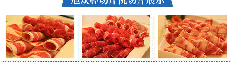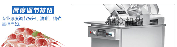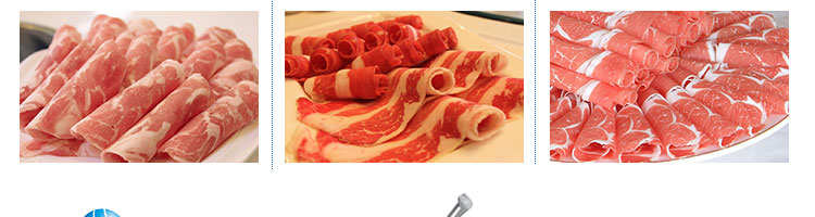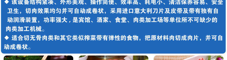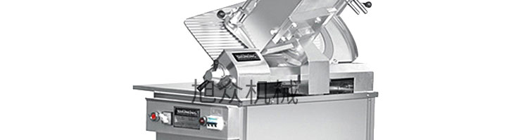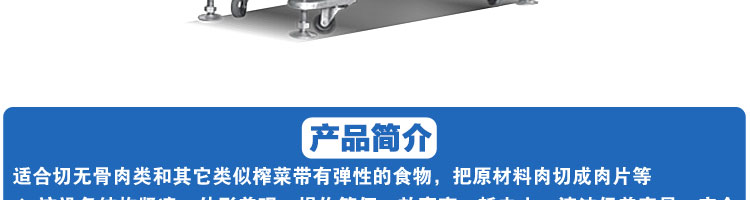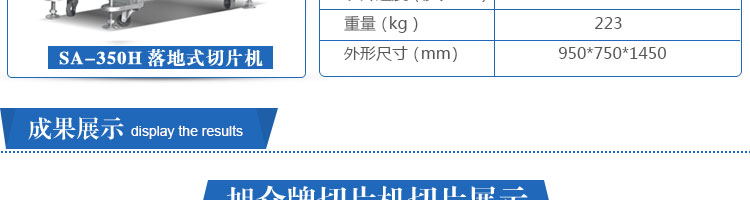SA-350H 全自動落地式切片機,適合切無骨肉類和其他類似榨菜帶有彈性的食物,把原材料肉切成肉片,并可自動成卷狀??汕信H馄?、羊肉片等