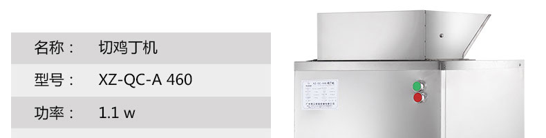 XZ-QC-A460切丁機(jī),切雞丁機(jī)適合將帶軟骨的禽類,如雞、鴨、鵝、鴿、魚類等切成塊(?。?。本系列設(shè)備工作效率高,采用不銹鋼制作,美觀耐用,切割快速,少碎骨。