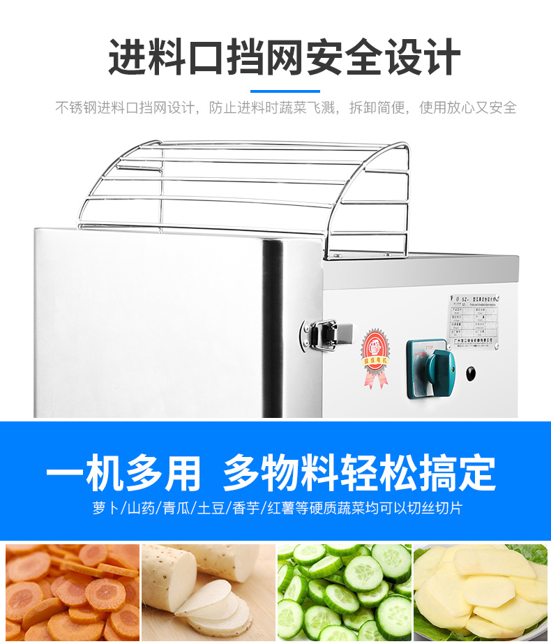 名稱300型瓜果切絲切片機(jī) 電源220V 功率1.1KW 產(chǎn)量200-300kg 尺寸620X330X600mm 重量42kg 規(guī)格請資詢銷售員 其他