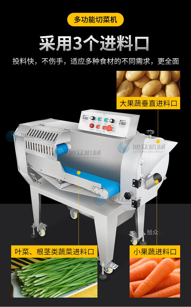 作者:旭眾機(jī)械發(fā)布時(shí)間:2023-06-30 00:28查看數(shù):您當(dāng)前的位置:首頁(yè)>>產(chǎn)品展示>>蔬菜加工系列>>切絲切片切丁機(jī)