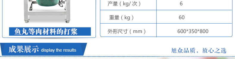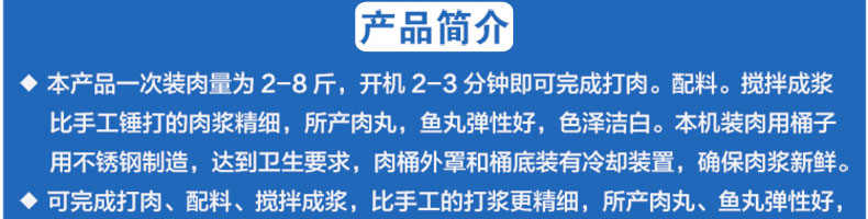 名稱SZ-24型高速肉丸打漿機(jī) 電源220/380V(見機(jī)器銘牌) 功率1.5-2.2kw/3kw 產(chǎn)量6千克/小時(shí) / 10千克/小時(shí) 尺寸355*405*950mm / 800*400*950mm 重量55kg/130kg 規(guī)格 其他