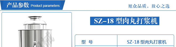 名稱SZ-18型肉丸打漿機(jī) 電源220v 功率0.75kw/1.5kw 產(chǎn)量2.3千克/小時 / 4千克/小時 尺寸330*300*780mm / 330*330*800mm 重量21kg/30kg 規(guī)格 其他
