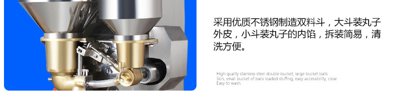 SZ-602包心肉丸機,可生產包心魚丸、包心豬肉丸、撒尿牛肉丸、爆汁小魚丸等多種球形醬湯類包餡產品。操控性強、穩(wěn)定性高、出品率穩(wěn)定;可抽皮增餡,做到皮薄餡多。