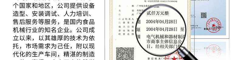 廣州旭眾食品機(jī)械有限公司是一家集科研開發(fā),生產(chǎn)設(shè)計(jì),營(yíng)銷服務(wù)為一體的現(xiàn)代化生產(chǎn)企業(yè)?,F(xiàn)代化生產(chǎn)車間,精湛制造技術(shù),所產(chǎn)機(jī)械歷經(jīng)市場(chǎng)重重考驗(yàn),不斷贏得海內(nèi)外客戶的贊譽(yù)。