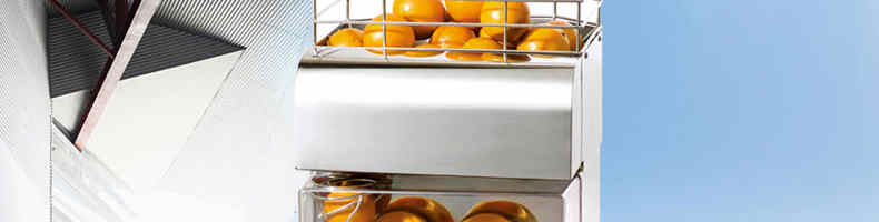2000E-4自動榨橙汁機,該機設(shè)計合理,采取擠壓式,鮮橙經(jīng)消毒、漂洗后,直接進入機器 ,自動剝皮、榨汁、過濾,現(xiàn)榨現(xiàn)飲,不僅適用于小飲店、水果店、飯店、賓館、酒吧、卡廳、茶秀、咖啡屋等,也適用于成功人士的家庭使用。