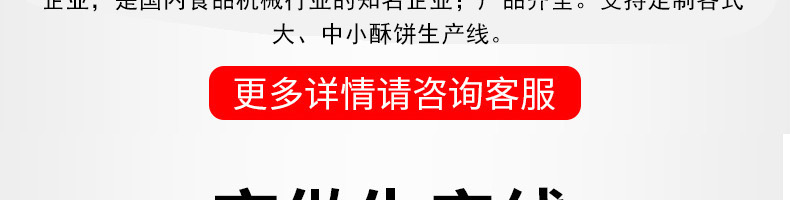 名稱酥餅機(jī)生產(chǎn)線 電源220/380V(見機(jī)器銘牌) 功率各款型號(hào)有所不同,請(qǐng)聯(lián)系聯(lián)系員 產(chǎn)量聯(lián)系銷售員 尺寸聯(lián)系銷售員 重量聯(lián)系銷售員 規(guī)格聯(lián)系銷售員 其他