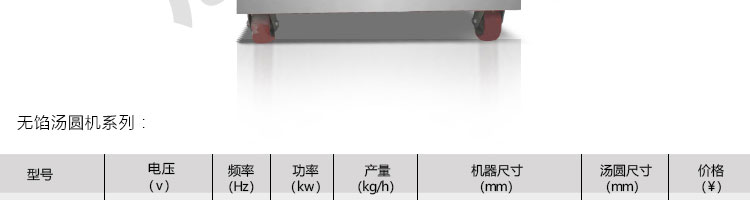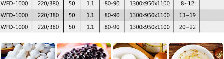 名稱VFD-1000無餡湯圓機 電源220/380V(見機器名牌) 功率1.1kw 產(chǎn)量20-50kg/h(規(guī)格不同,產(chǎn)量不同) 尺寸外形尺寸1300*950*1100mm 重量 規(guī)格8-34mm 其他