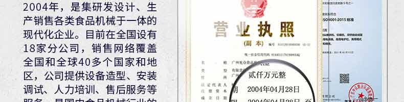 廣州旭眾食品機(jī)械有限公司是一家集科研開發(fā),生產(chǎn)設(shè)計(jì),營銷服務(wù)為一體的現(xiàn)代化生產(chǎn)企業(yè)。現(xiàn)代化生產(chǎn)車間,精湛制造技術(shù),所產(chǎn)機(jī)械歷經(jīng)市場重重考驗(yàn),不斷贏得海內(nèi)外客戶的贊譽(yù)。