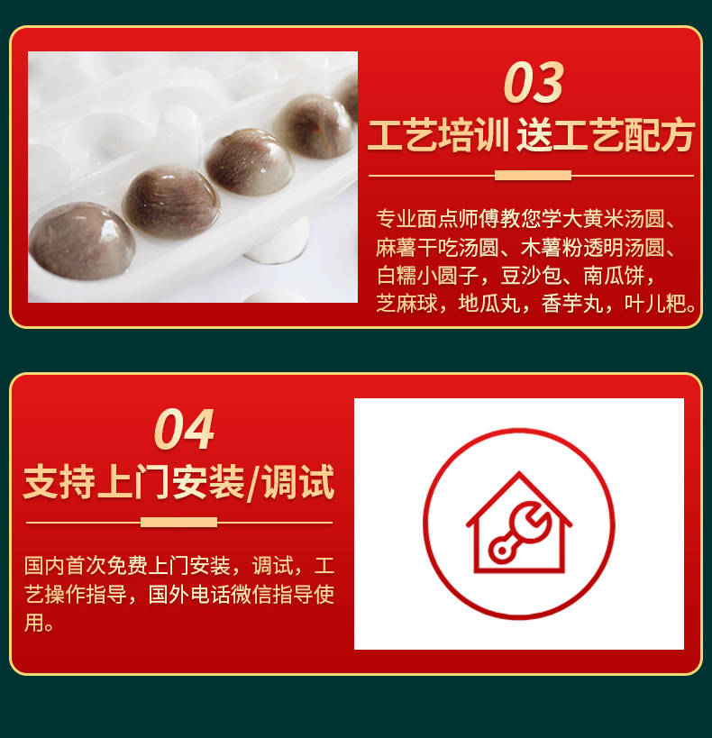 VFD-4000型湯圓自動成型排盤一體機,本機依外皮及餡料的種類不同,可制作湯圓、豆沙包、南瓜餅、奶黃包、含餡饅頭、玉兔包等包餡食品的設(shè)備。工作效率高、相當(dāng)于8-12個工人同時制作湯圓,真正低收入、高收效、省錢省工。適合用于各種工作場所。免費上門安裝,贈送工藝