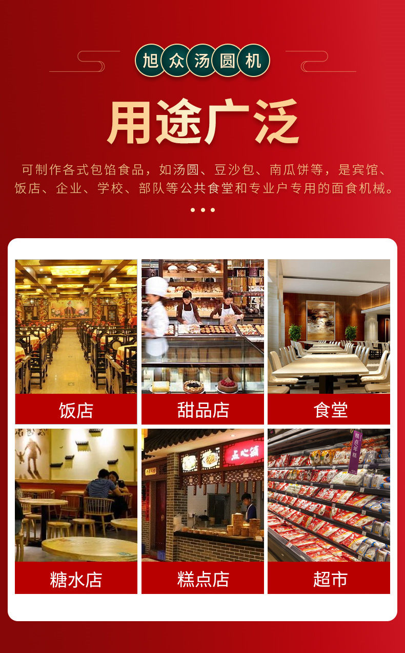 4000C湯圓機(jī),多功能湯圓機(jī),運(yùn)行穩(wěn)定、時(shí)產(chǎn)量高、大小可調(diào)。制品多樣性生產(chǎn)各種大小規(guī)格不同的有餡湯圓,無餡湯圓、豆沙包、南瓜餅,芝麻球,地瓜丸,香芋丸,葉兒粑,青團(tuán),粘豆包等。