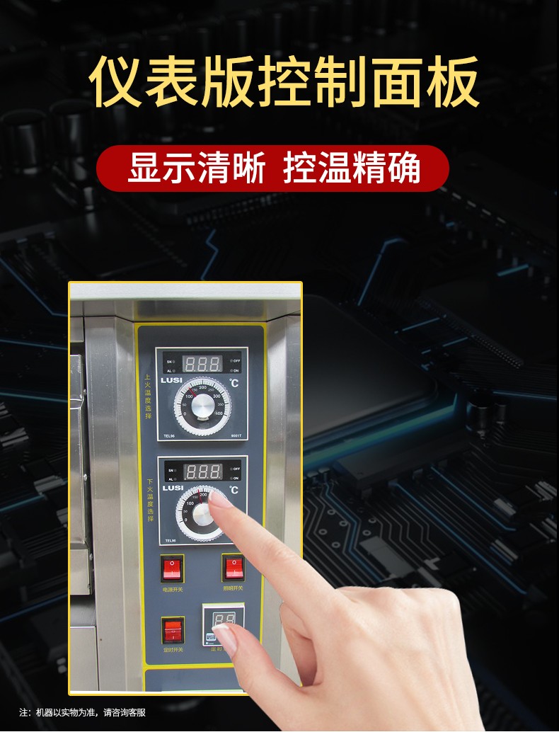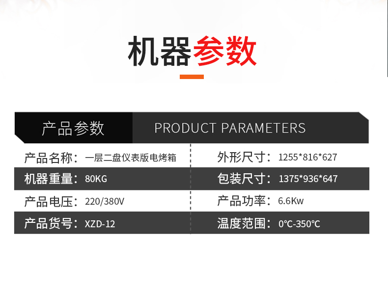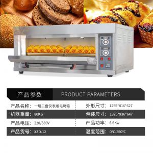 名稱一層兩盤儀表版電烤箱 電源220V/380V 功率6.6KW 產(chǎn)量 尺寸1255*816*627mm 重量80KG 規(guī)格一層兩盤 其他