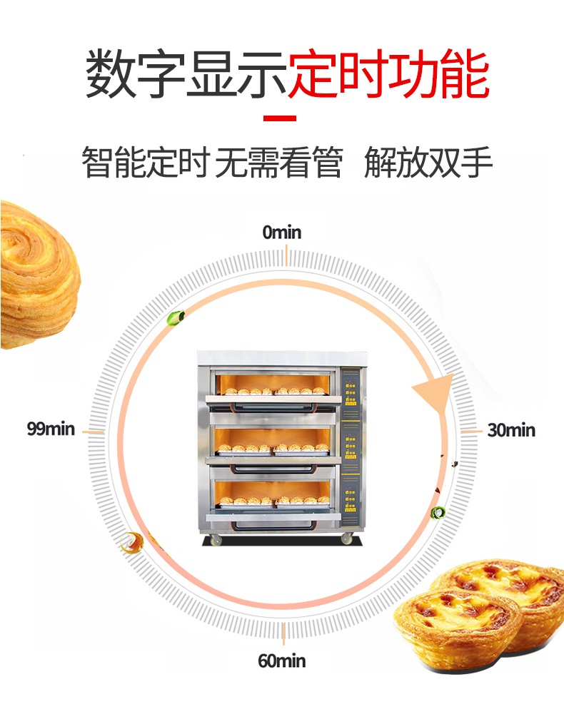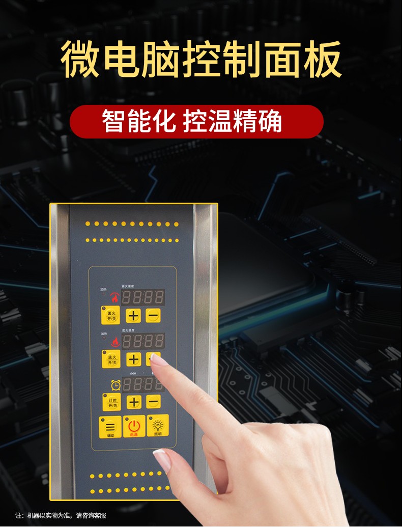 名稱三層六盤電腦版電烤箱 電源380V 功率19.8Kw 產(chǎn)量 尺寸1255*816*1455 mm 重量240KG 規(guī)格三層六盤 其他