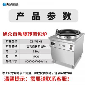 名稱XZ-WSKB自動旋轉(zhuǎn)煎包爐 電源380V 功率8KW 產(chǎn)量請咨詢銷售員 尺寸800*800*950mm 重量請咨詢銷售員 規(guī)格請咨詢銷售員 其他