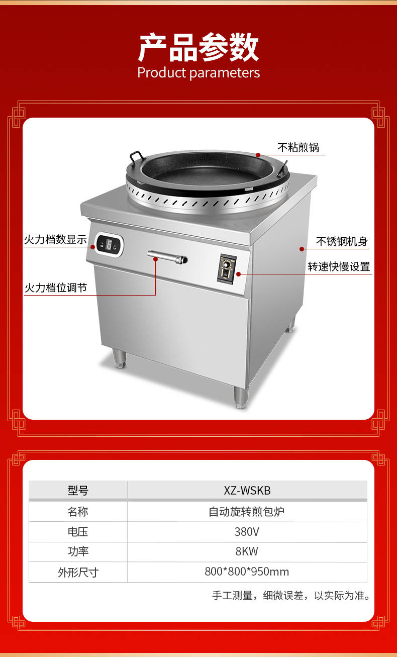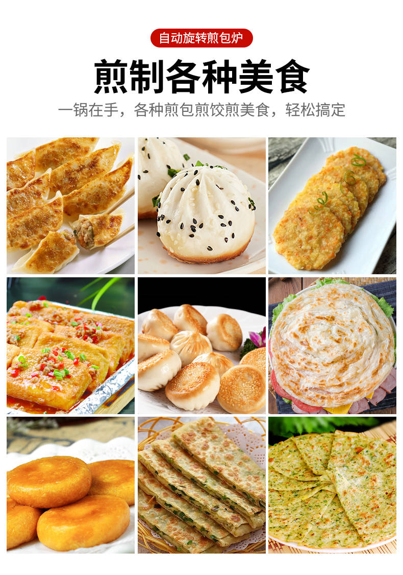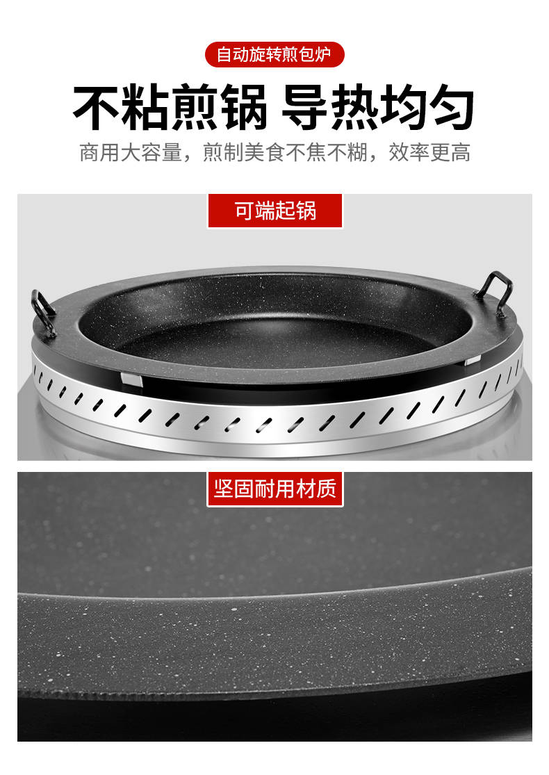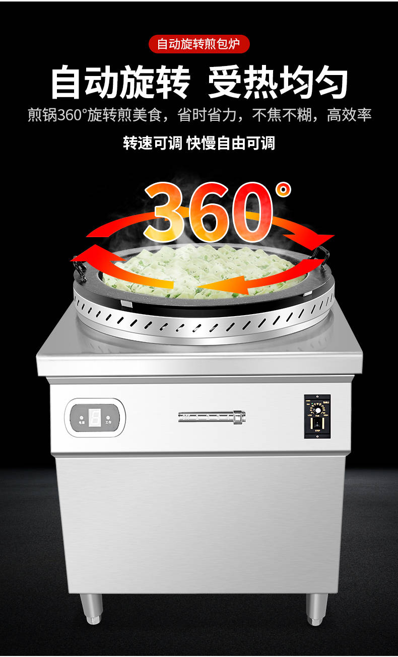 XZ-WSKB自動旋轉(zhuǎn)煎包爐,煎制各種美食鍋在手,各種煎包煎餃煎美食,輕松搞定。自動旋轉(zhuǎn)、受熱均勻煎鍋360°旋轉(zhuǎn)煎美食,省時省力,不焦不糊,高效率轉(zhuǎn)速可調(diào)快慢自由可調(diào)。