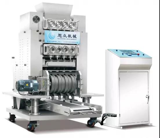 XZ4T-1502型多頭湯圓成型排盤機(jī)是一款依外皮及餡料的種類不同,可制作出湯圓、豆沙包、南瓜餅、奶黃包、含餡饅頭、玉兔包等包餡食品,并可自動排盤的設(shè)備。功能齊全,適用性廣,自動化程度高,定量準(zhǔn)確,操作簡單,只要將面團(tuán)與餡料放入進(jìn)料口,開機(jī)便可自動搓圓、成型,制品不易變形。