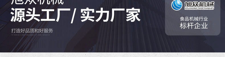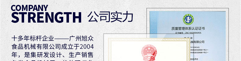 廣州旭眾食品機(jī)械有限公司是一家集科研開發(fā),生產(chǎn)設(shè)計(jì),營銷服務(wù)為一體的現(xiàn)代化生產(chǎn)企業(yè)?,F(xiàn)代化生產(chǎn)車間,精湛制造技術(shù),所產(chǎn)機(jī)械歷經(jīng)市場(chǎng)重重考驗(yàn),不斷贏得海內(nèi)外客戶的贊譽(yù)。