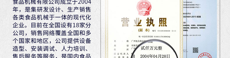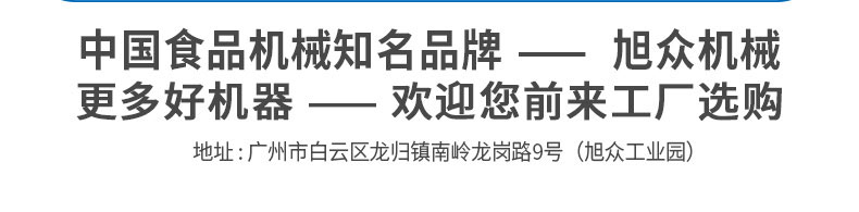 廣州旭眾食品機(jī)械有限公司是一家集科研開(kāi)發(fā),生產(chǎn)設(shè)計(jì),營(yíng)銷(xiāo)服務(wù)為一體的現(xiàn)代化生產(chǎn)企業(yè)。現(xiàn)代化生產(chǎn)車(chē)間,精湛制造技術(shù),所產(chǎn)機(jī)械歷經(jīng)市場(chǎng)重重考驗(yàn),不斷贏(yíng)得海內(nèi)外客戶(hù)的贊譽(yù)。