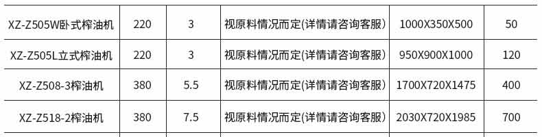 名稱立式50榨油機(jī) 電源220/380V(見機(jī)器名牌) 功率3~18.5KW 產(chǎn)量 尺寸下拉見產(chǎn)品參數(shù)表 重量 規(guī)格 其他