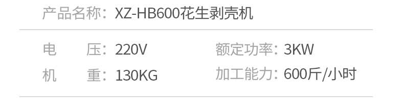 名稱花生脫殼機 電源220V 功率3kw 產(chǎn)量600斤/h 尺寸1200×680×1650mm 重量130kg 規(guī)格 其他